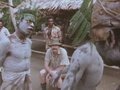 While Dr Nelson is seated, male villagers painted white and wearing leaf headdresses perform around him with an audience in the background. In voice-over and interview, Nelson tries to explain the ‘farce’ going on as a way for the villagers ... [read more]